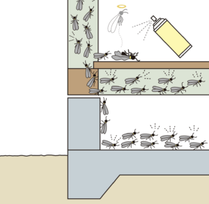 ヤマトシロアリの駆除では、目に見えるシロアリを駆除するだけではなく、巣ごと駆除しなければ被害を根本的に止めることはできません。そのためには、薬剤をシロアリに巣へ持ち帰らせ、コロニー全体に効果を行き渡せる必要があります。